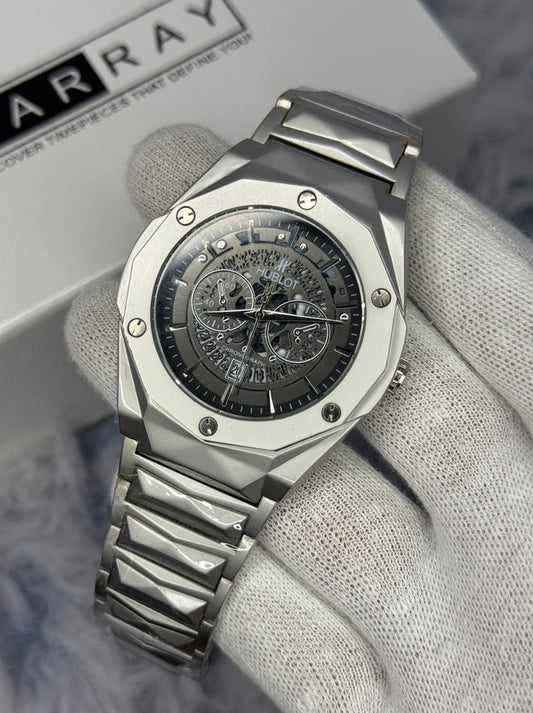 HB Premium Skeleton Watch - Luxury Silver Matte Chain